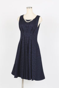 ◆アクセ付きジャガード膝丈ドレス(ネイビー)(0503)