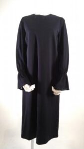 ◆ストレッチ素材 袖シースルーシンプルネイビードレス(1478)