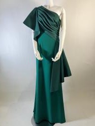 ◆TADASHI SHOJIのグリーンアシンメトリーデザインロングドレス(1648)