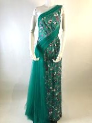 ◆TADASHI SHOJIのグリーンワンショルダーフラワーデザインロングドレス(1649)