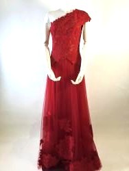 ◆TADASHI SHOJI(タダシショージ)のレッドワンショルダーフラワーデザインロングドレス(1650)