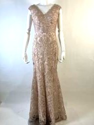 ◆TADASHI SHOJIのピンク刺繍ロングドレス(1653)