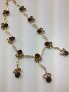 ブラウン×シャンパン三つ葉モチーフデザインネックレス(6638)