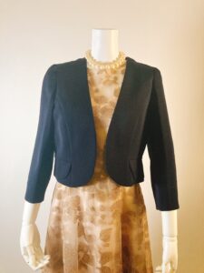 卒業式のお母さまの服装ではワンピース+ジャケットやアンサンブル、スーツなどが定番。卒業式は華やかな要素の強い入学式よりも厳かな雰囲気があるため、色はブラックやネイビーなど暗めのカラーがオススメですが、これという厳密な決まりはありません。また、近年ではジャケットを着用せずに式に参加する方も増えています。
