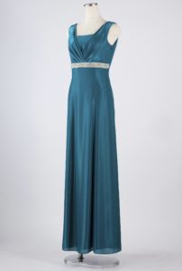 ◆胸下切り替えのレースとプリーツのピーコックブルードレス(1490)