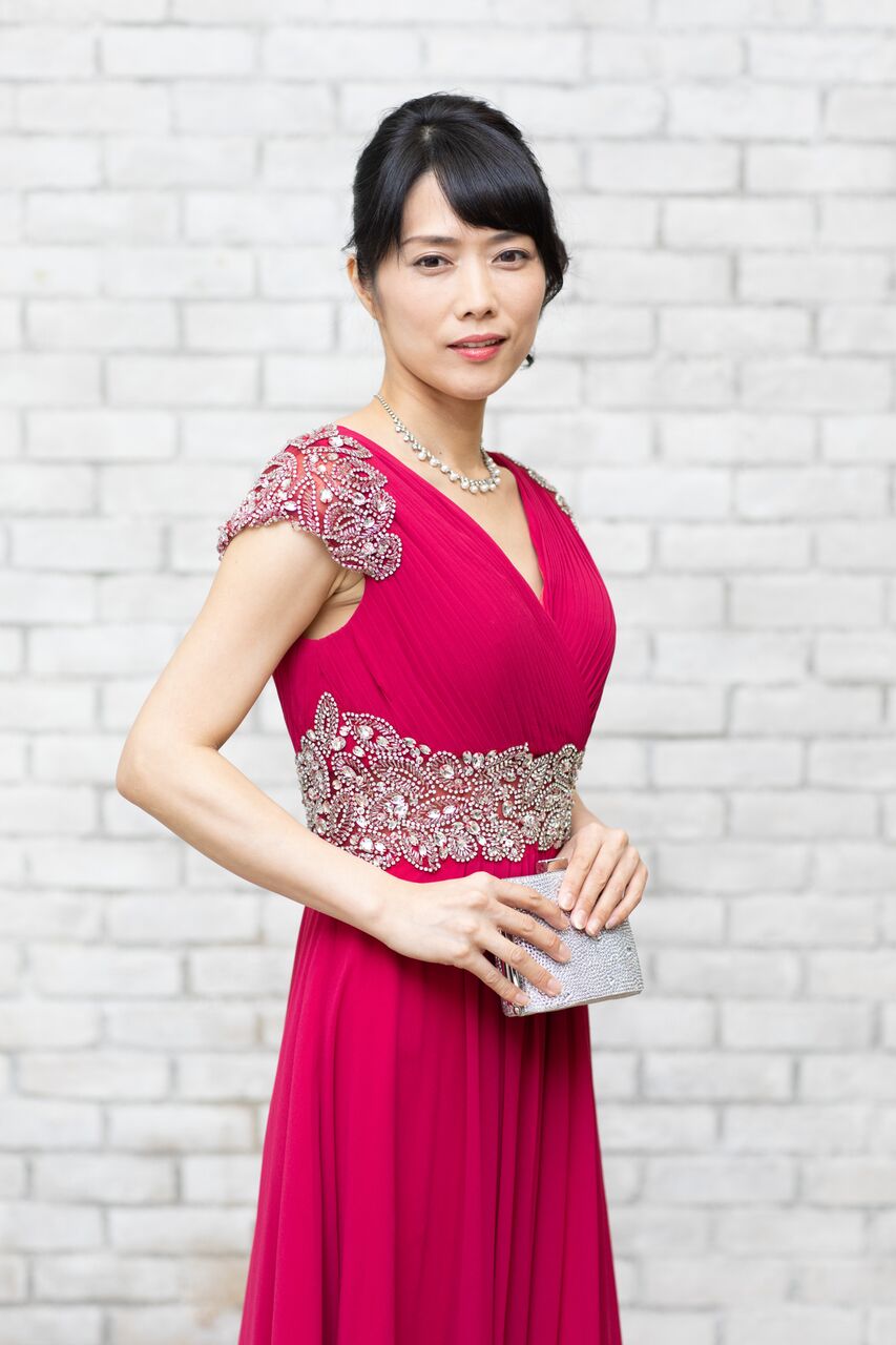 LA VELLLA袖つきのマゼンダカラー舞台ドレス